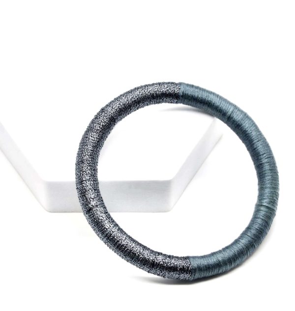 Bracelet jonc réalisé sur une base de pâte polymère et recouvert de fil à broder en mode unicolore.
